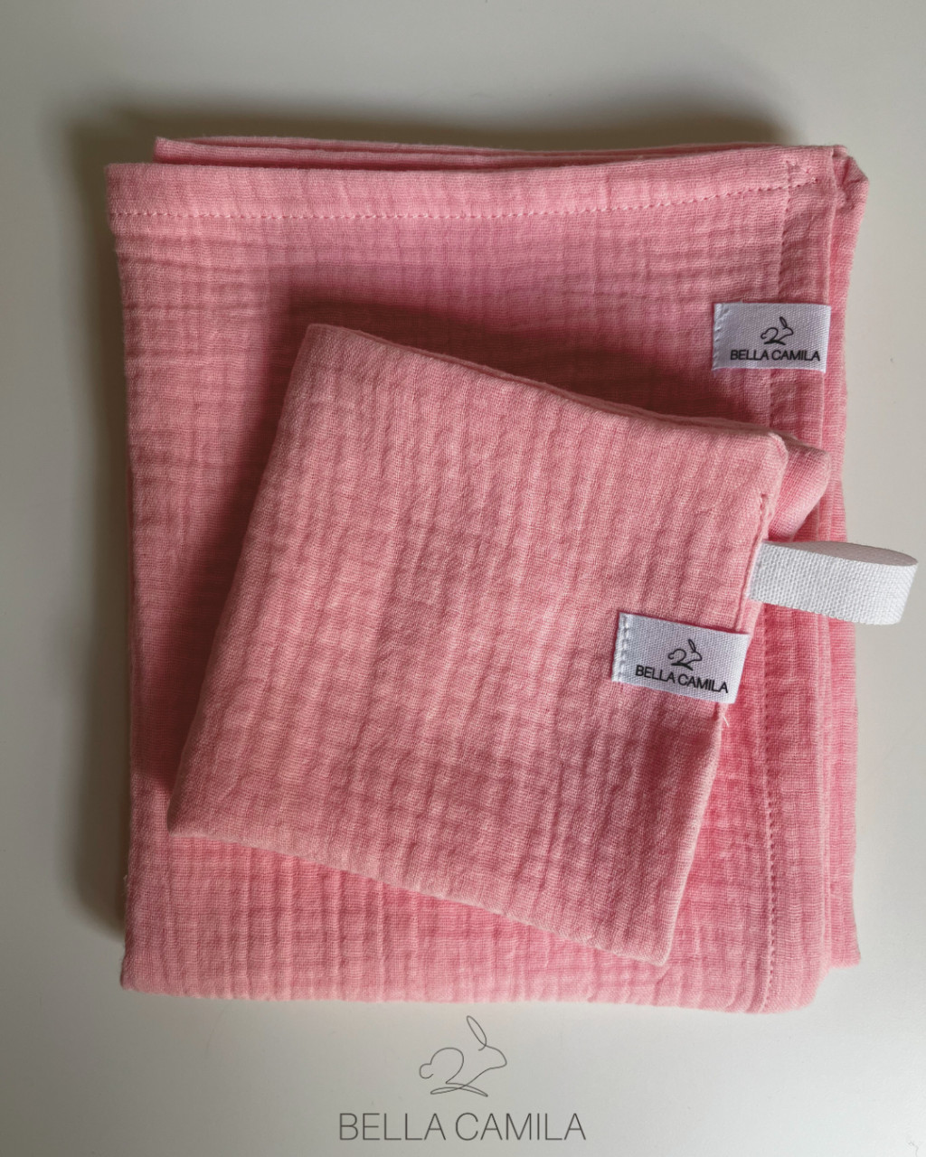 Bella Camila duplagéz textilkendő szett – rózsaszín árnyalatban 70×80 cm + 24×24 cm