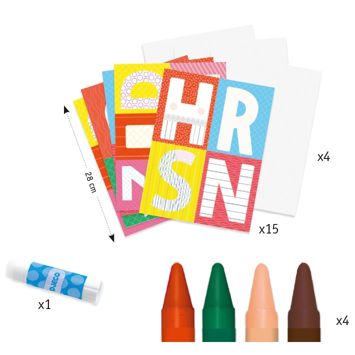 Djeco Kreatív készlet - Kiszínezett vicces ABC nagybetűim - A world to create, letters