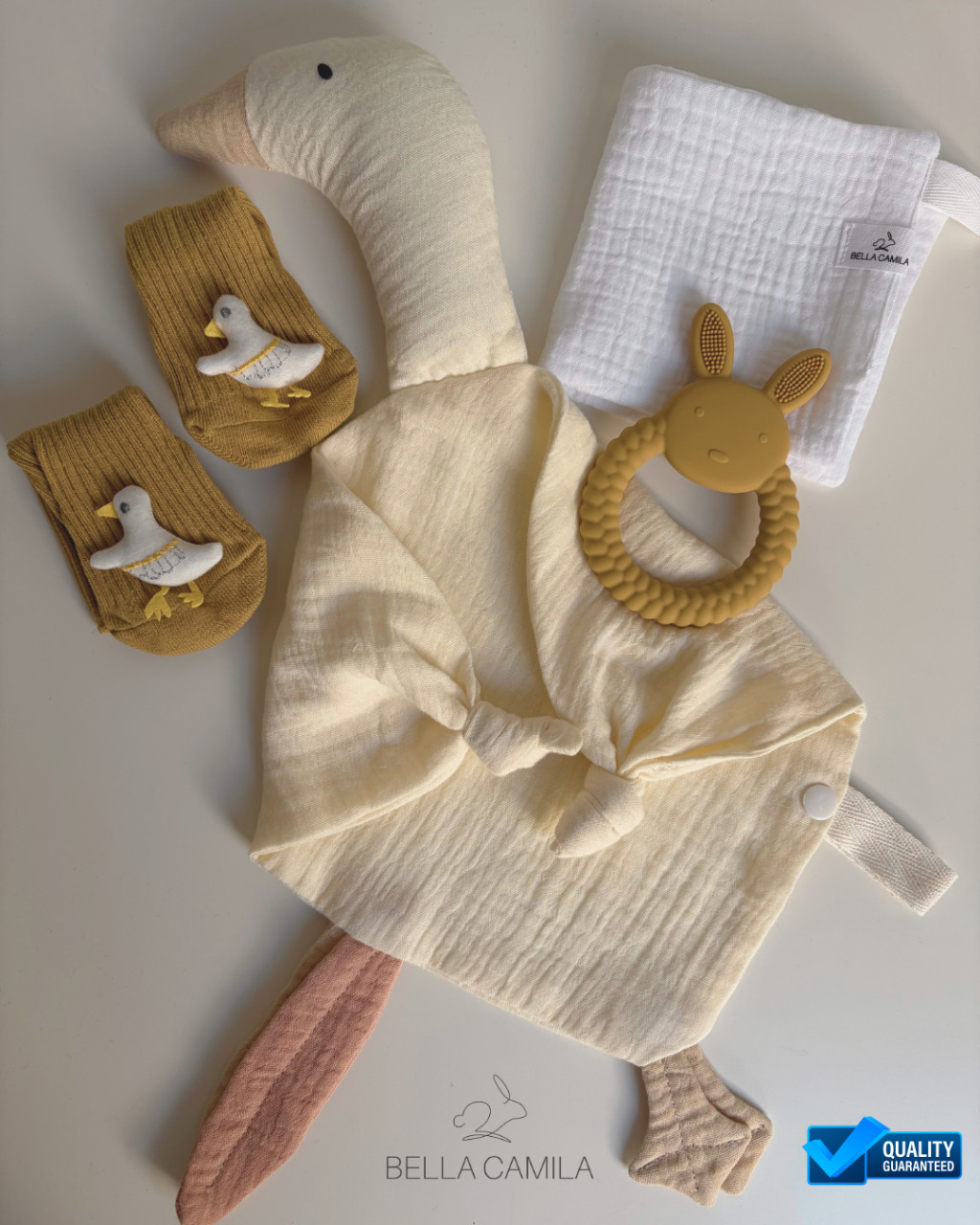 A Mustard babaköszöntő ajándék kollekció tökéletes választás mindazoknak, akik egy igazán különleges, mégis univerzális ajándékot keresnek babaváróra, babalátogatásra vagy akár keresztelőre. Letisztult, modern színvilága és gondosan összeválogatott tartalma miatt a Mustard kollekció minden kisbaba és szülő szívébe könnyen belopja magát. Ez a prémium ajándékcsomag a stílus, a biztonság és a praktikusság tökéletes egyensúlyát kínálja, így garantáltan örömteli meglepetés lesz bármilyen alkalomra.